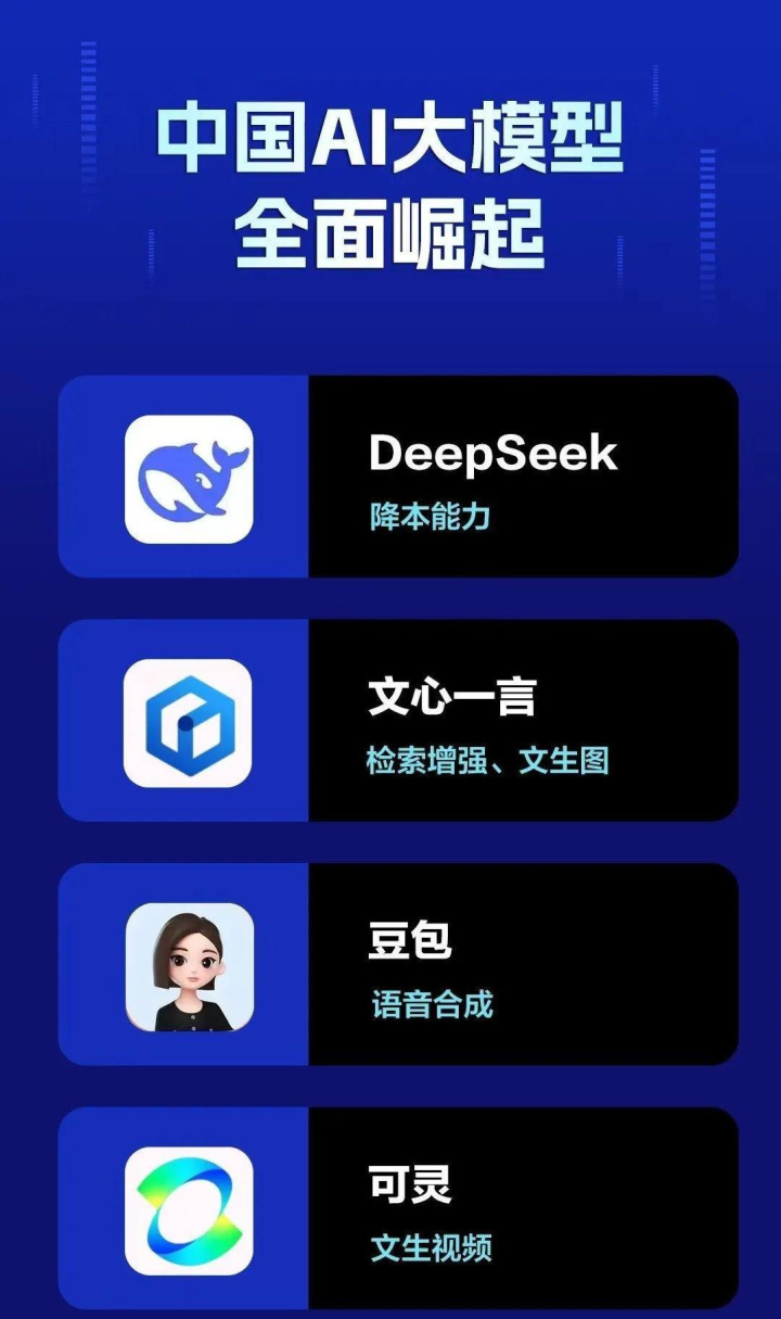 但不管破防还是真香,DeepSeek-R1都已经成为一股震撼硅谷的“东方神秘力量”。DeepSeek,不是一个人在战斗,背后也是中国大模型的全面崛起。中国大模型遍地开花在各个领域,中国的大模型都不缺乏强者,而且各具特色。就拿DeepSeek-R1来说,它的特色在于成本极低,也正是这一点戳到了OpenAI和Claude的痛处。做搜索出身的百度,将积累下来的技术经验用到了模型产品当中,把RAG能力做成了模型特色,让文心一言成为了RAG领域的最强选手。在文字之外,语音是一种更加自然的对话方式,在这方面,字节的豆包就有强大的端到端对话,能够处理复杂的中文内容,甚至感知人类情绪,总之是一点不输给OpenAI的《Her》。除了和对话相关的模型,在视频生成领域还有异军突起的快手可灵,视频质量已经实现对Sora的超越。可灵的出现也带动了一系列国产视频生成模型的发展,后来,字节的即梦、阿里的通义万相,还有来自大模型六小虎以及独立的视频模型厂商,都纷纷上线自己的产品。等到国产模型拥有了成熟的应用和商业模式,OpenAI的Sora才终于姗姗来迟,但与Demo刚刚出现时的惊艳相比已是泯然众人。